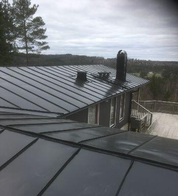 Vi är certificierade genom Roofit. Det är ett samarbete mellan SSAB (svenska stål AB), Mataki (papptillverkare) och Lindab (försäljare plåt). Så om vi använder deras material så kan vi lämna 30 års garanti på bandtäckning